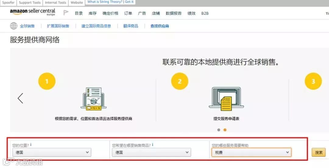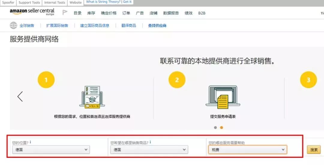 3、您可以通过选择您的位置和销售国家以及所需服务来筛选您的第三方服务商