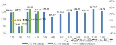 从2019年各月度交易走势来看,1-4月全国二手车交易量月度同比小幅回升,分别为0.79%、1.68%、3.42%和4.29%,呈现缓慢持续增长趋势。