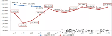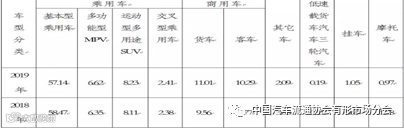 表1.2019年、2018年4月分车型交易量占比 单位:%