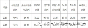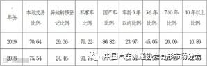 表2.2019年、2018年4月二手车交易类型占比 单位:%