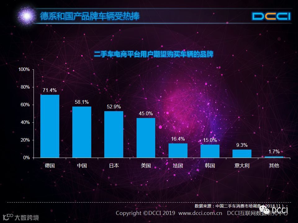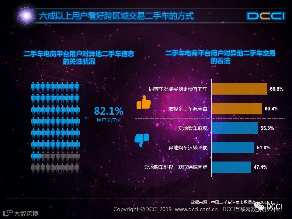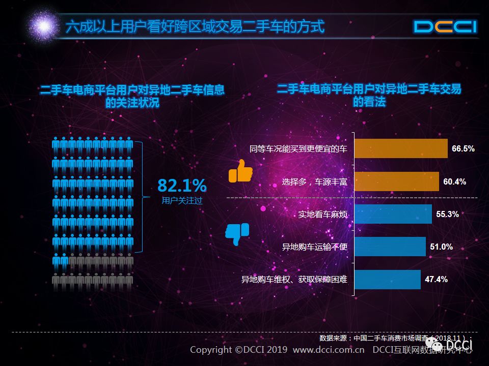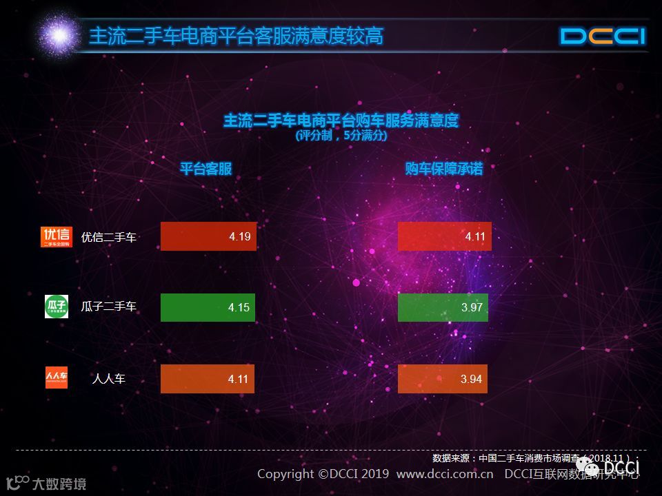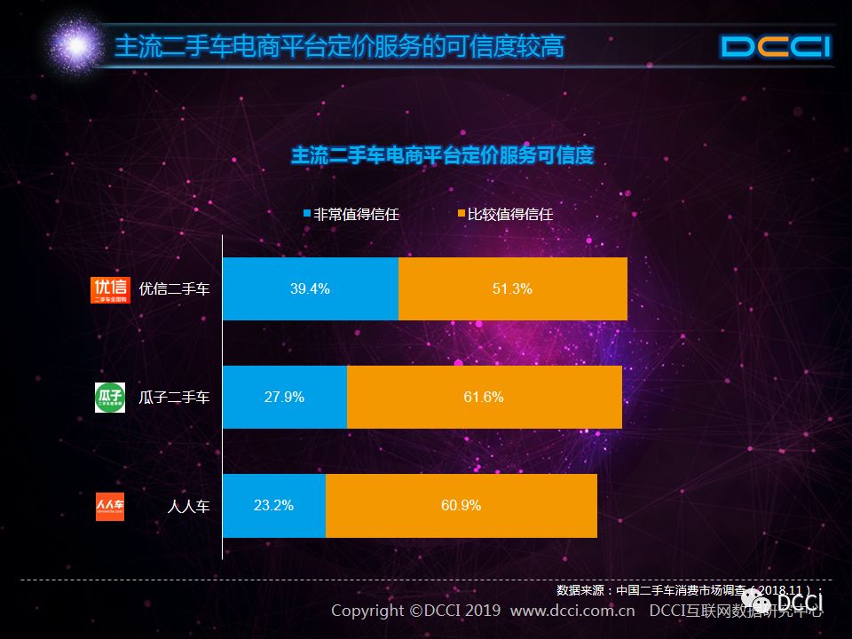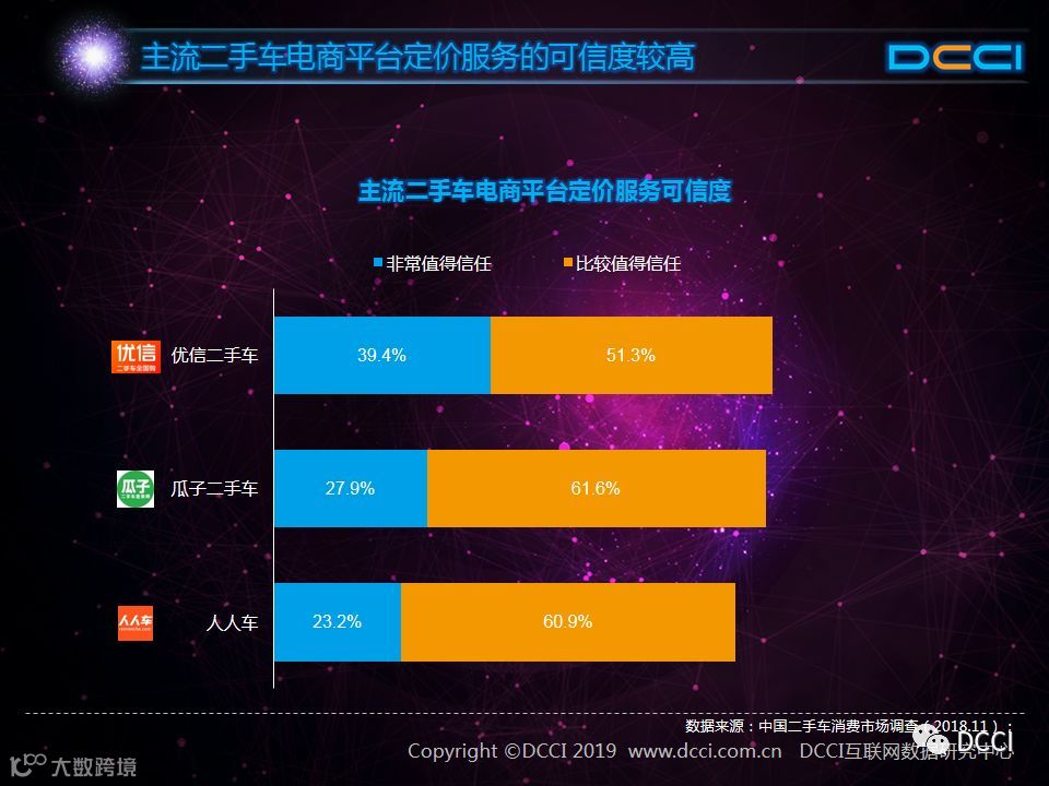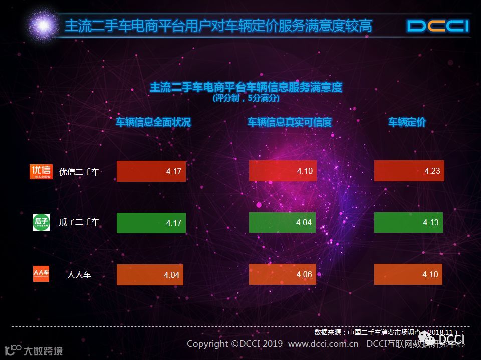 二手车市场中,在国家政策利好与二手车电商平台崛起的推动下,二手车销量增速较快,二手车市场在汽车市场中的影响力正在提升。在这样的背景下,DCCI发布《网络二手车交易用户体验研究报告(2018年终)》,其中研究发现: