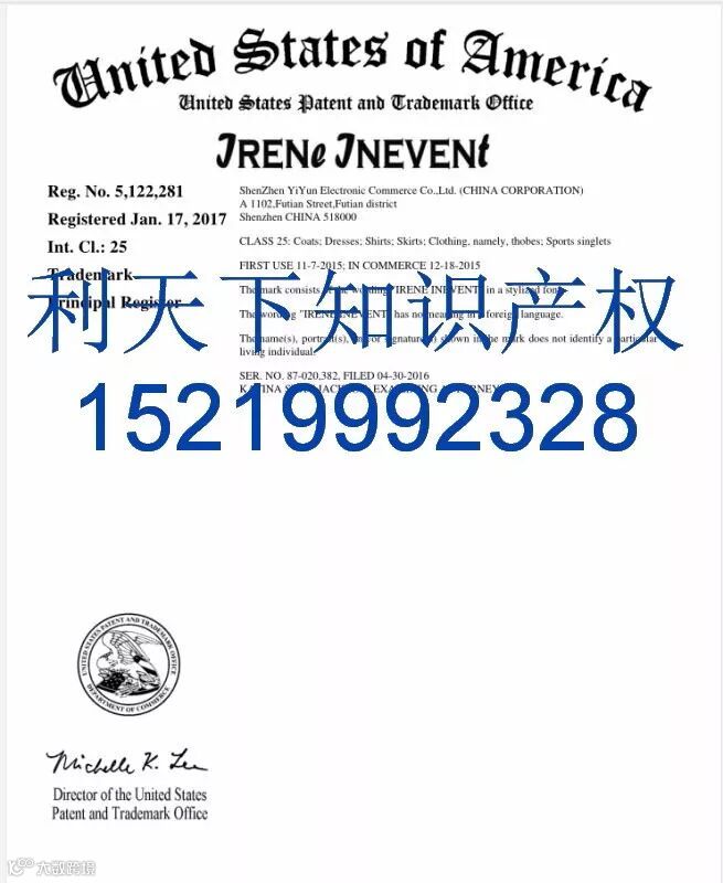 另外现在手上有三个美国25类R标,一个美国21类R标,一个英国11类R标可以转让!有需要可以来电咨询!15219992328