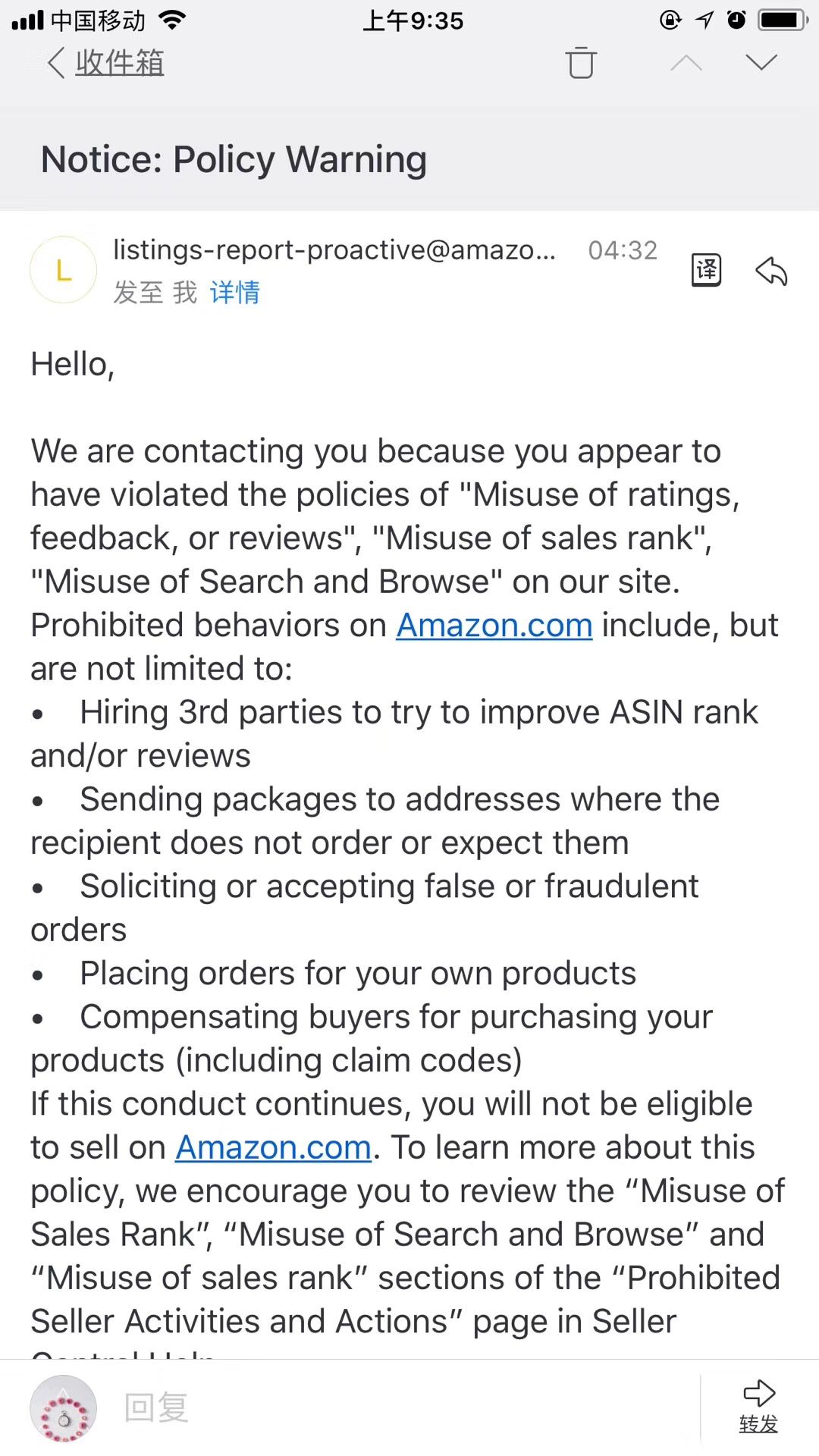根据以往批量警告或者投诉的案例,亚马逊最终肯定会做出相应的回复!而有消息称这个是亚马逊团队群发邮件,有则改之无则加勉!