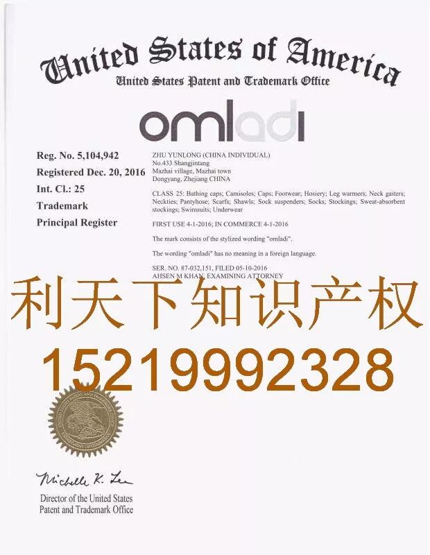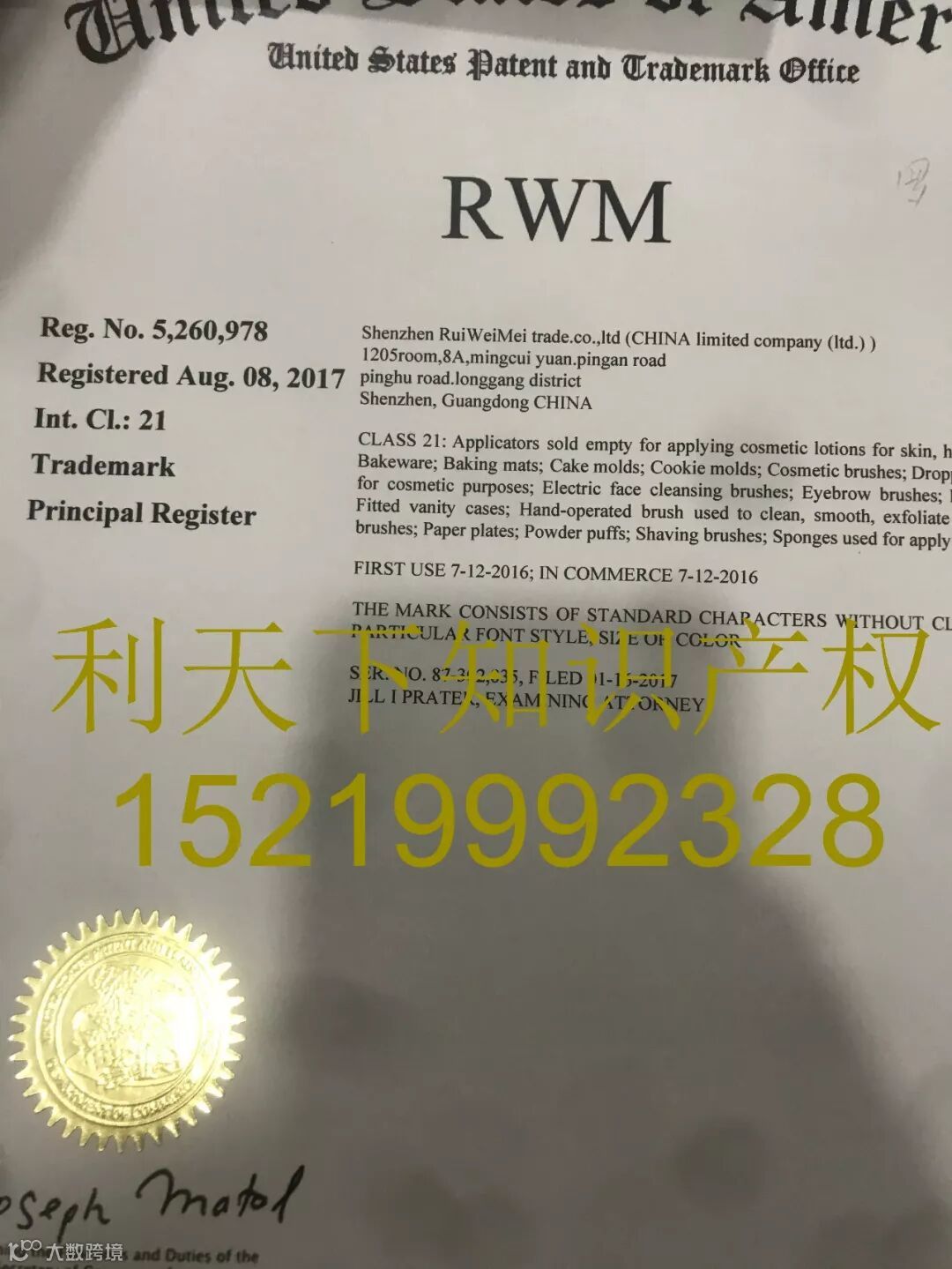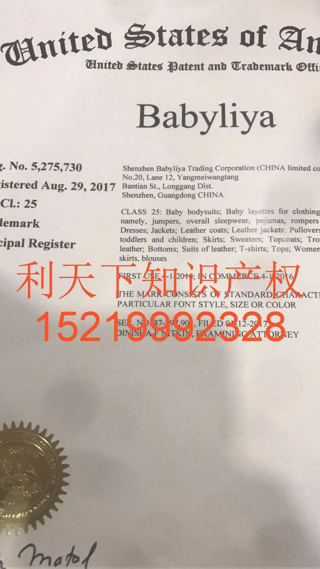 另外现在手上有两个美国25类R标,一个美国21类R标,一个英国11类R标可以转让!有需要可以来电咨询!15219992328