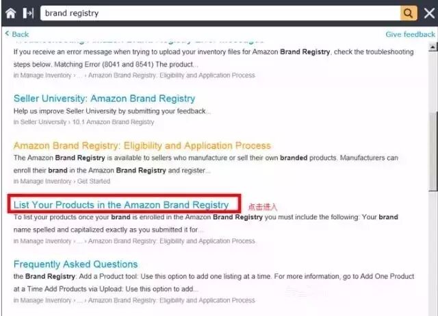 结果,下拉找到”List Your Products in the AmazonBrand Registry"链接点击进入: