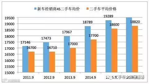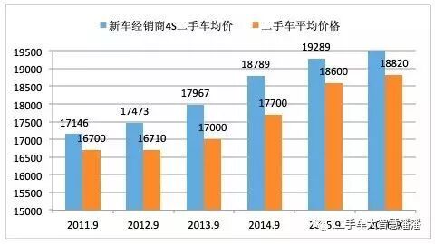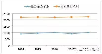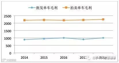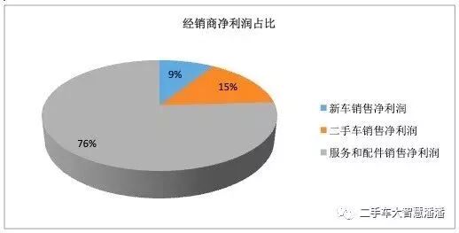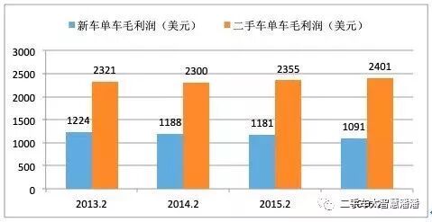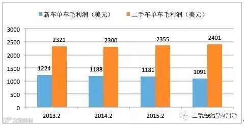 授权经销商4S店的主要业务又分为三大板块:新车、二手车、服务和配件,其收入占比分别为:56%,35%,9%,但三者的净利润占比分别为:9%,15%,76%,其主要净利润还是来自于服务和配件销售。虽然主要利润来自于服务和备件销售,但这部分利润却不得不依赖于车辆的整体销售。同样是车辆销售,每辆二手车的利润大约是新车利润的两倍,且新车利润却逐年降低,二手车利润却逐年升高。如图所示: