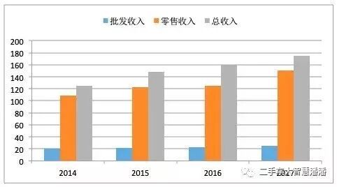 一、在全美有17545 家汽车经销商,其中最大的是AutoNation,共计拥有360家4S店,分为四个大区,总共代理20多个品牌,员工2万6千余人,2017 年销售额为 211亿美元,销售车辆221790 辆。其业务包括:新车销售、二手车销售、零件和服务、金融/保险净额,以及其他业务等。