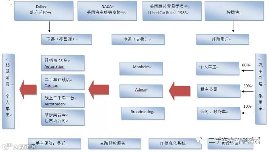 现在,在美国,所有的汽车经销商4S店都要涉足二手车市场,因为二手车的销售是新车的3倍。由于一些新车的特性,加上互联网带来的多信息时代,使得新车的市场利润率并没有那么高,反而二手车市场的利润率更高一些。为了应对这样的市场趋势和现状,所有美国经汽车销商都涉足二手车经营。而美国经销商零售二手车的来源通常通过新车、二手车置换或者拍卖等方式获得。