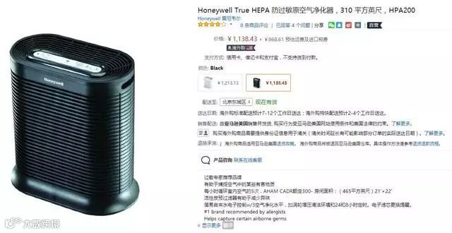 霍尼韦尔是一家国际性从事自控产品开发及生产的公司,公司成立于1885年,有超过百年的历史。该品牌的空气净化器有助于捕捉空气中的某些有害物质,减少过敏原,是过敏专家的推荐产品。True HEPA 防过敏原空气净化器,亚马逊黑五期间售价1135元(不含运费及进口税费),亚马逊Prime会员节省运费771元。