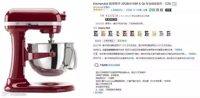 Kitchen Aid是意大利厨房用品公司,生产销售厨用器皿电器等,是Whirlpool电器公司旗下的品牌。近百年来Kitchen Aid被几代美国人热捧,是老美厨房的奢侈品。无论是打蛋、揉面、绞肉酱、蛋糕、面包等等,当然搭配别的配件还能开发很多别的功能,简直是无所不能。KP26M1XER 6 Qt.专业600系列,亚马逊黑五期间售价2366元(不含运费及进口税费),亚马逊Prime会员节省运费636元。