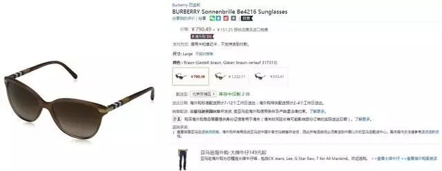 Burberry始终秉承品牌传统精髓,彰显精湛绝伦的匠制工艺、卓越隽永的英伦设计与锐意革新的时尚理念,是英国皇室御用品牌。Sonnenbrille Be4216 Sunglasses太阳镜采用了Burberry最具代表性的格子图案设计,愈加彰显了Burberry的产品特征。亚马逊黑五期间售价792元(不含运费及进口税费),亚马逊Prime会员节省运费93元。