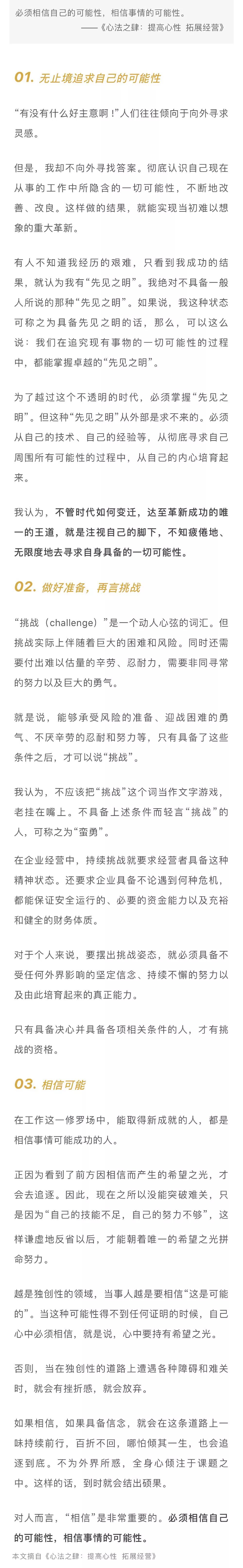 导读:稻盛和夫:不管时代如何变迁,革新成功的唯一王道是寻求自己的无限可能性