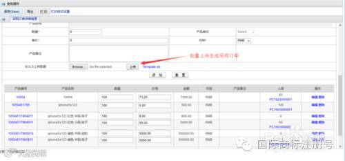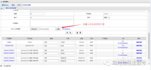 在列表右上角点“导出”,将导出成Excel表格,经过人工简单修改后即可导入批量生成采购单。