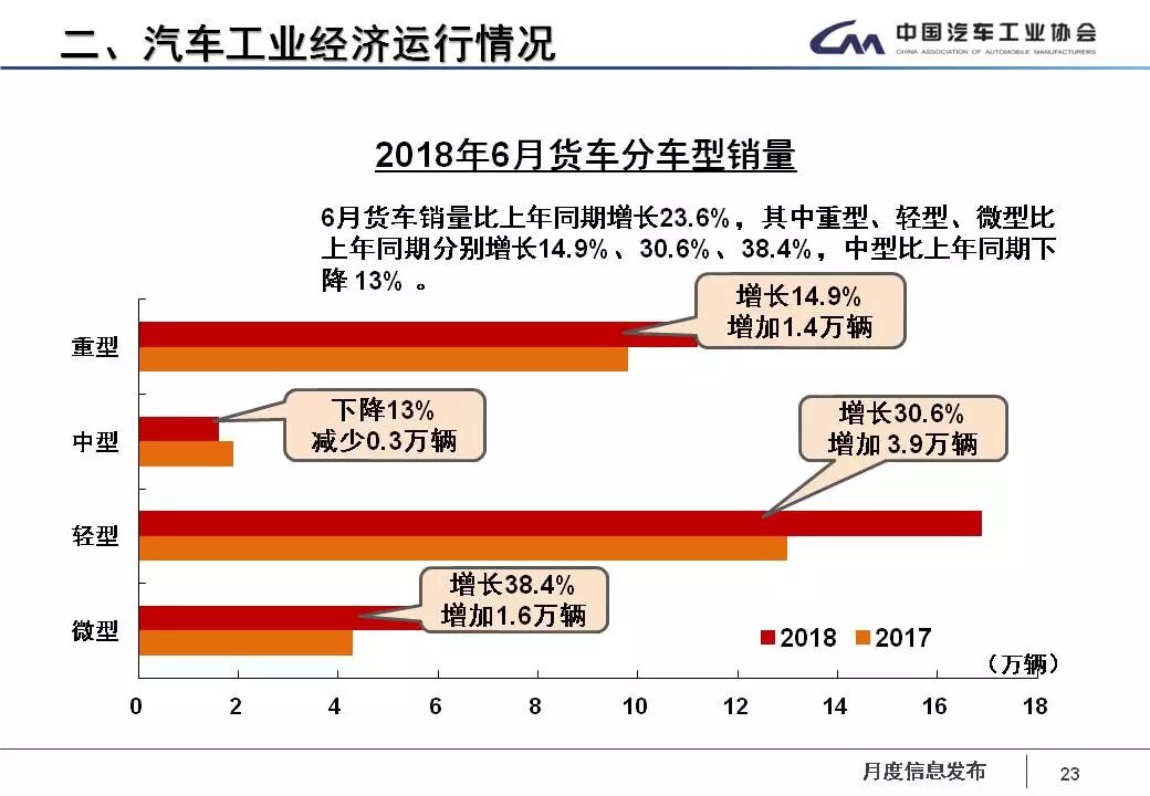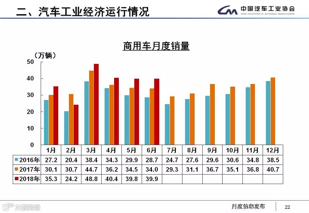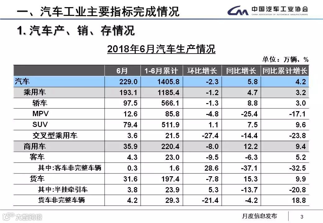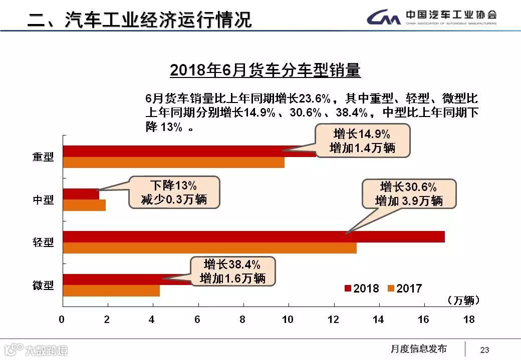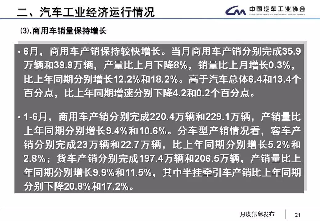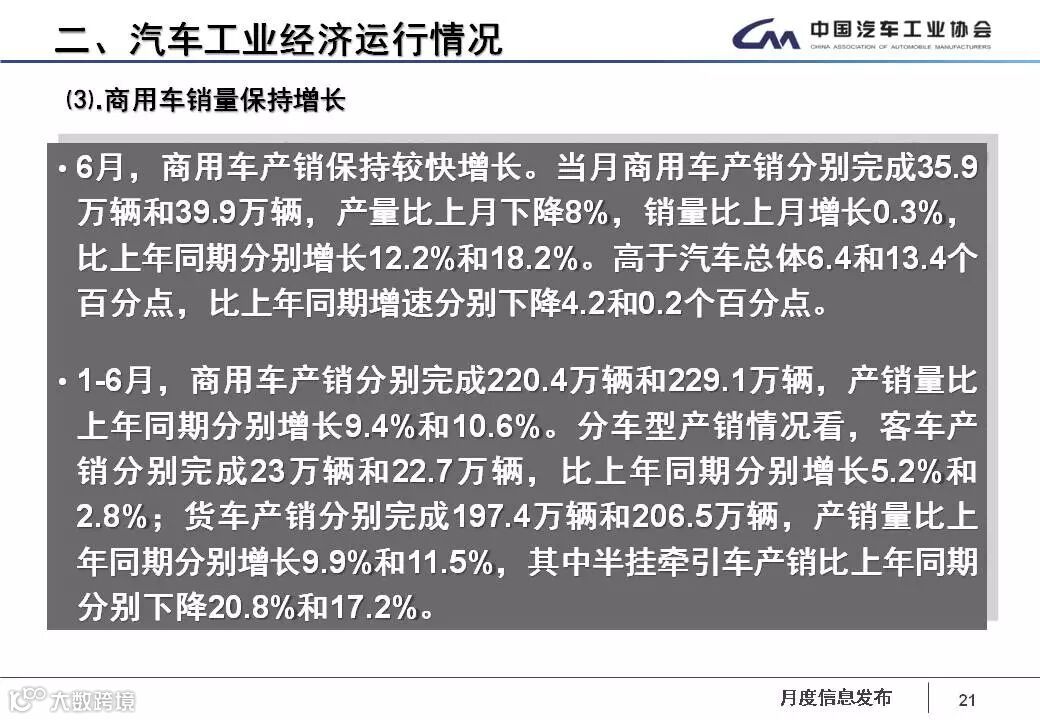 ➂ 商用车:6月销量39.95万辆,增长18.20%;1-6月销量229.11万辆,增长10.58%