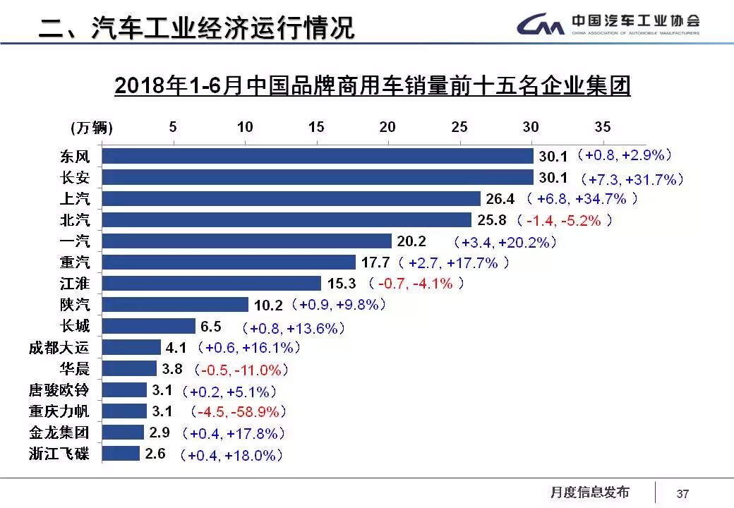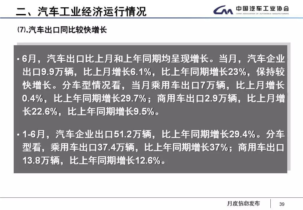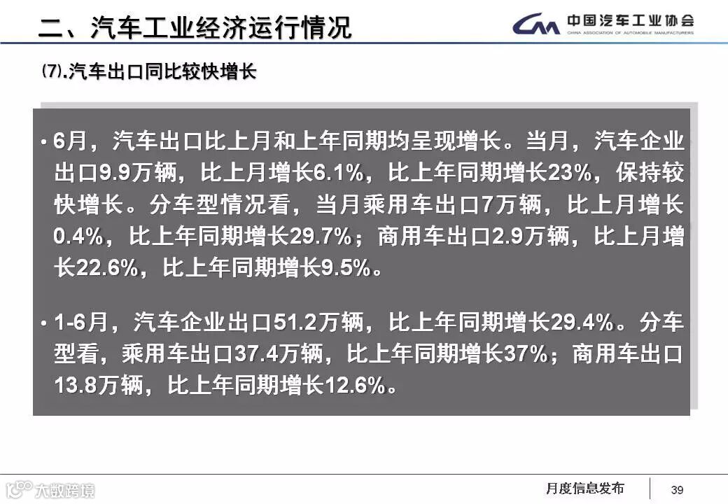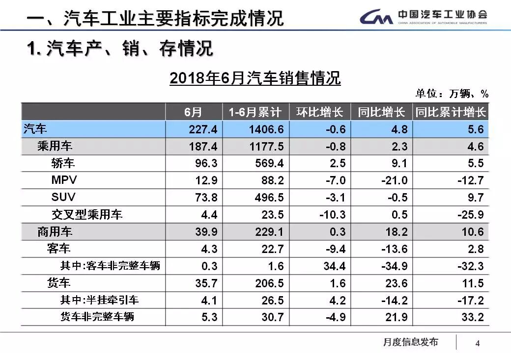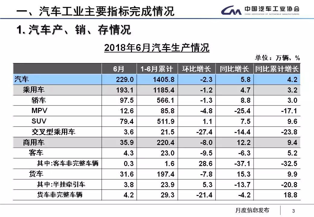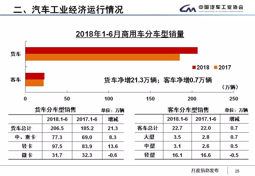 ➂ 商用车:6月销量39.95万辆,增长18.20%;1-6月销量229.11万辆,增长10.58%