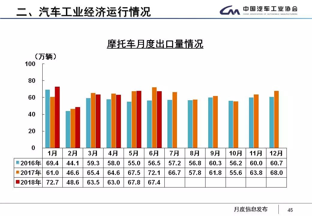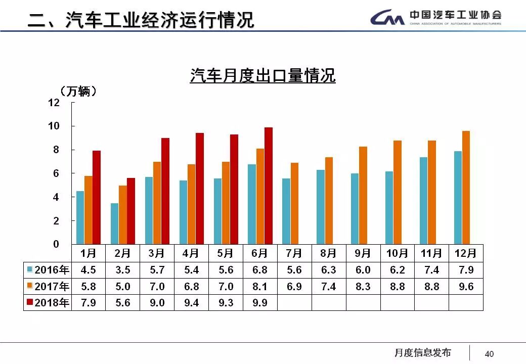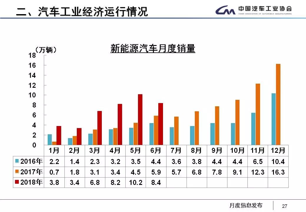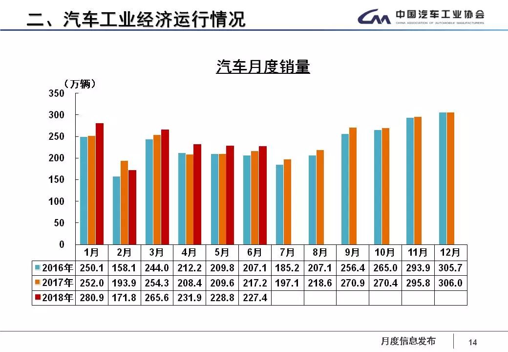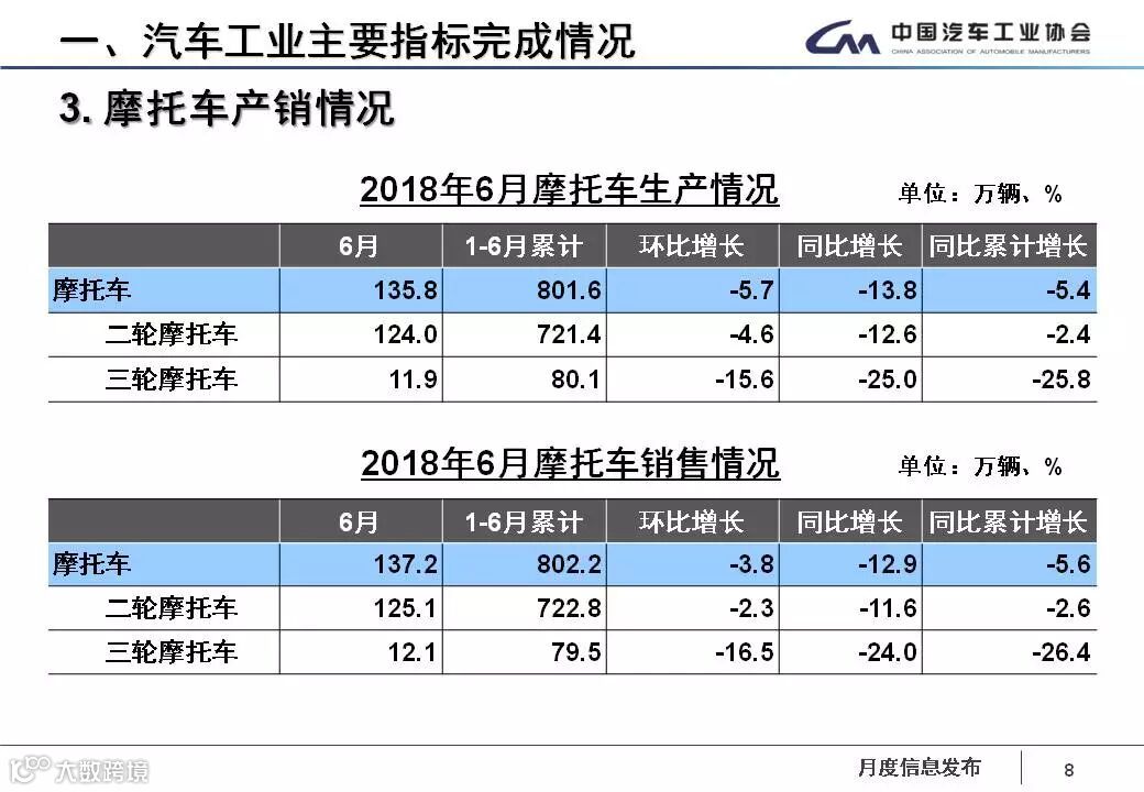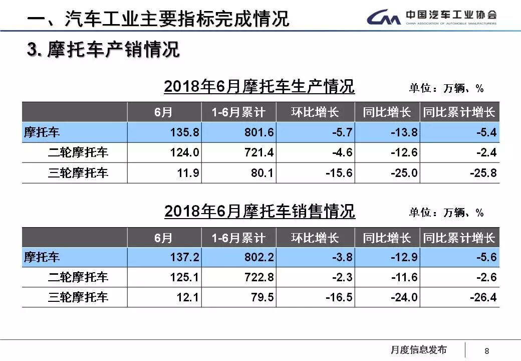 2018年6月,汽车产销环比略有下降,同比呈小幅增长。1-6月,汽车产销保持稳定增长,与1-5月相比,产量增速有所提升,销量增速略有回落;与上年同期相比,产量增速有所减缓,销量增速小幅提升,产销增速略高于协会年初的预期。