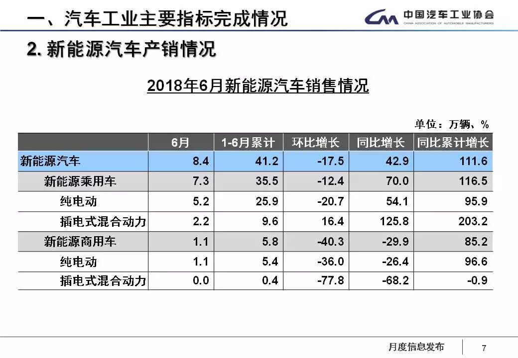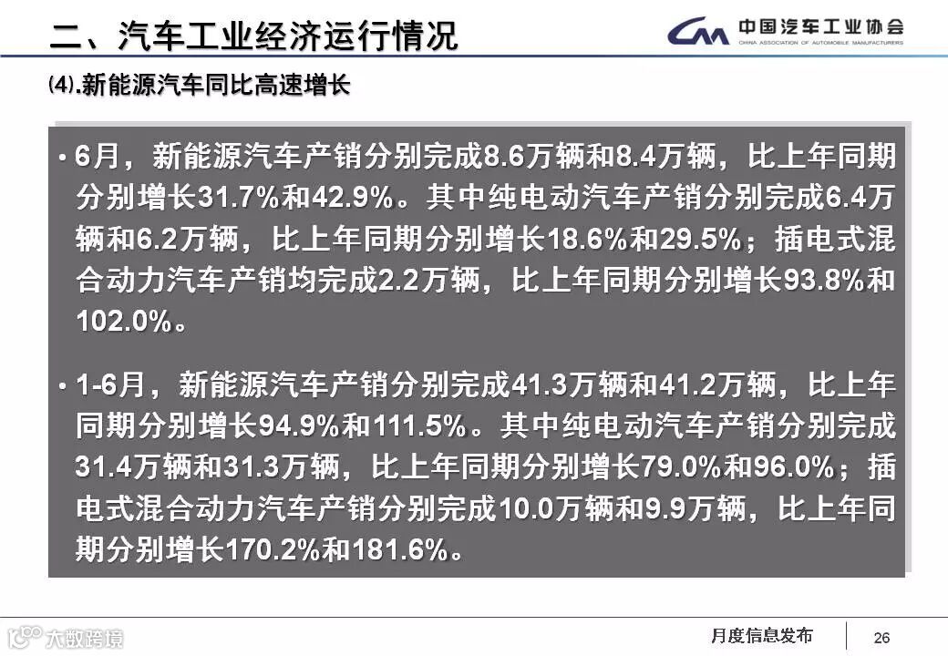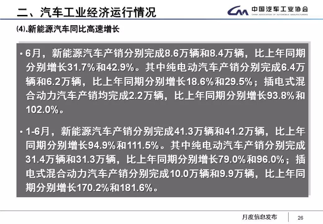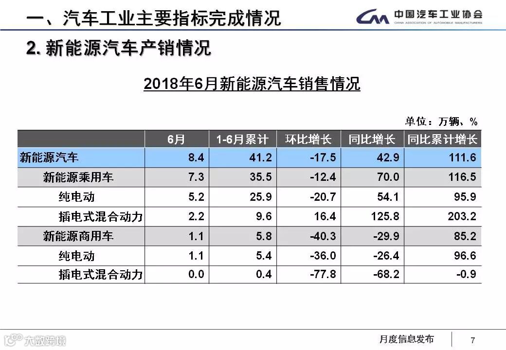 ➃ 新能源汽车:6月销量8.4万辆,增长42.9%;1-6月销量41.2万辆,增长111.5%