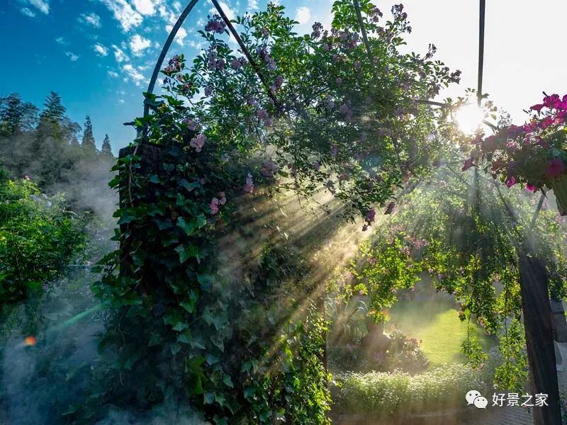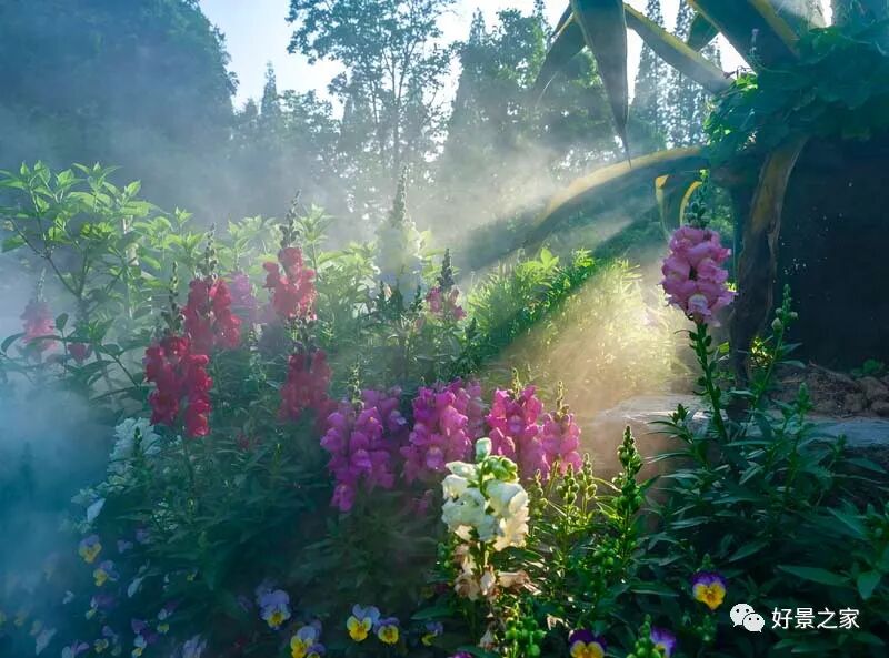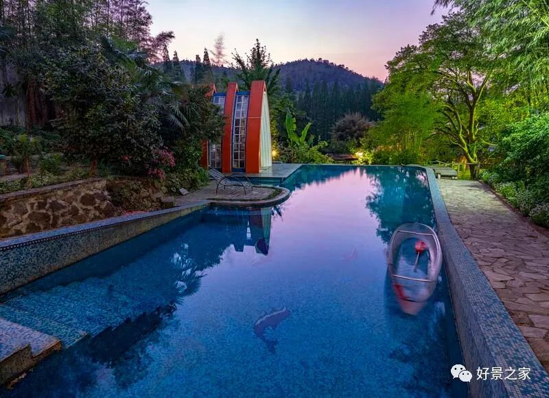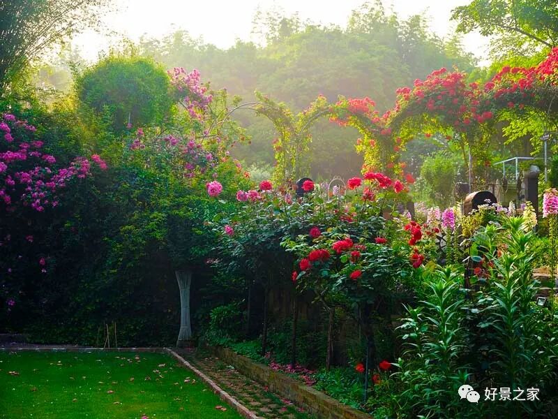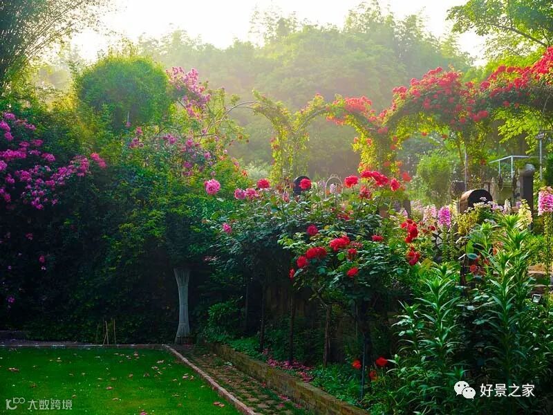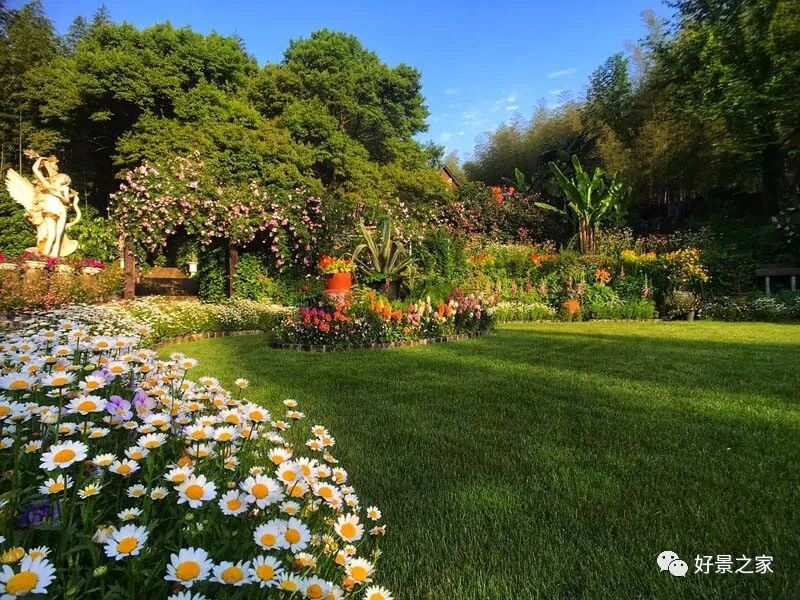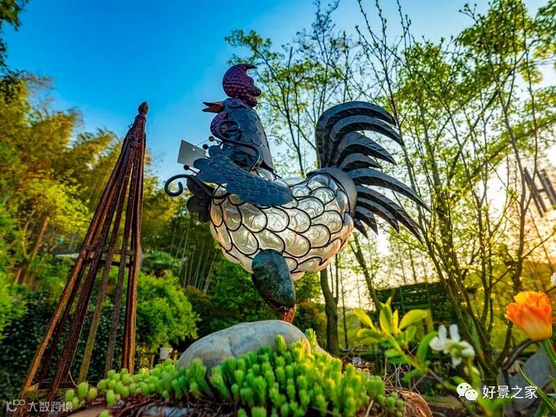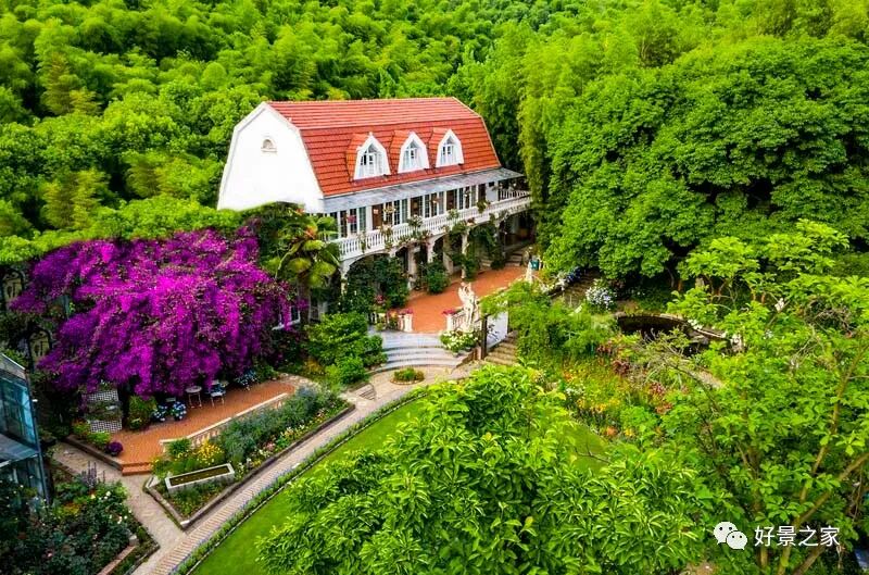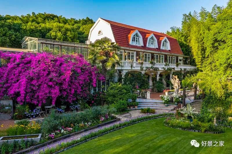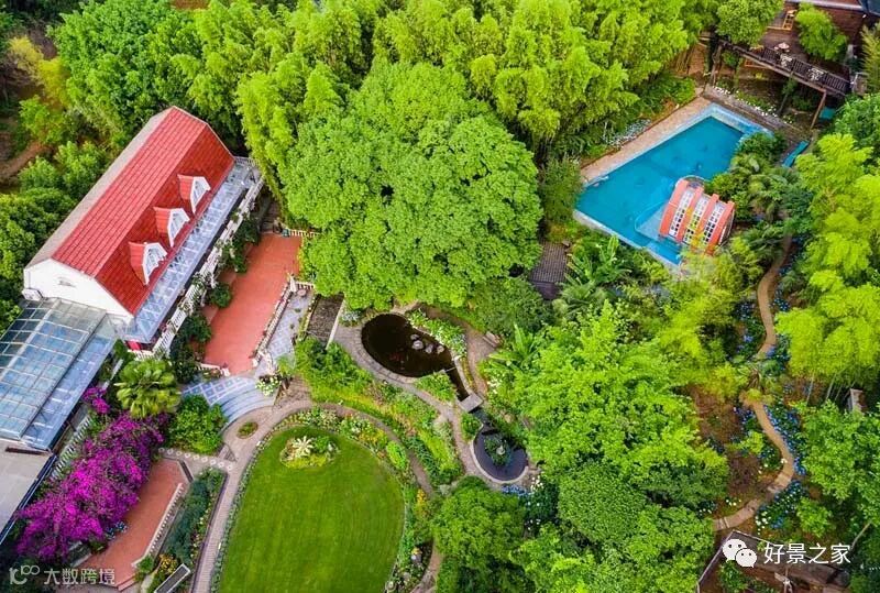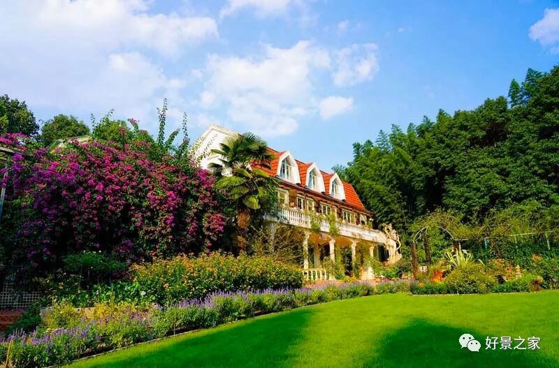 园内有三棵百年古木;北纬31度露天种植的热带植物巨型三角梅;一千多种来自热带、亚热带、温带的奇花异草。精致的草坪,山泉泳池,咖啡屋,儿童游乐区,还有园内自由的黑天鹅、孔雀、小猫咪、鸽儿们,仿佛重现了一篇安徒生童话。