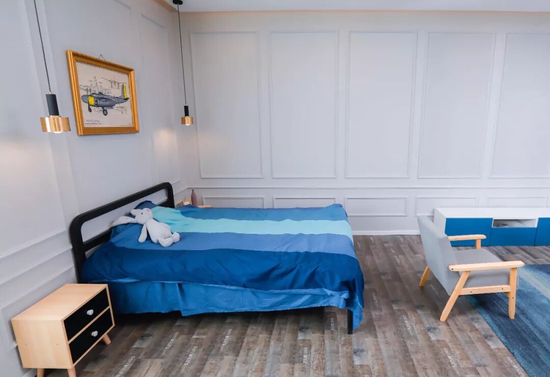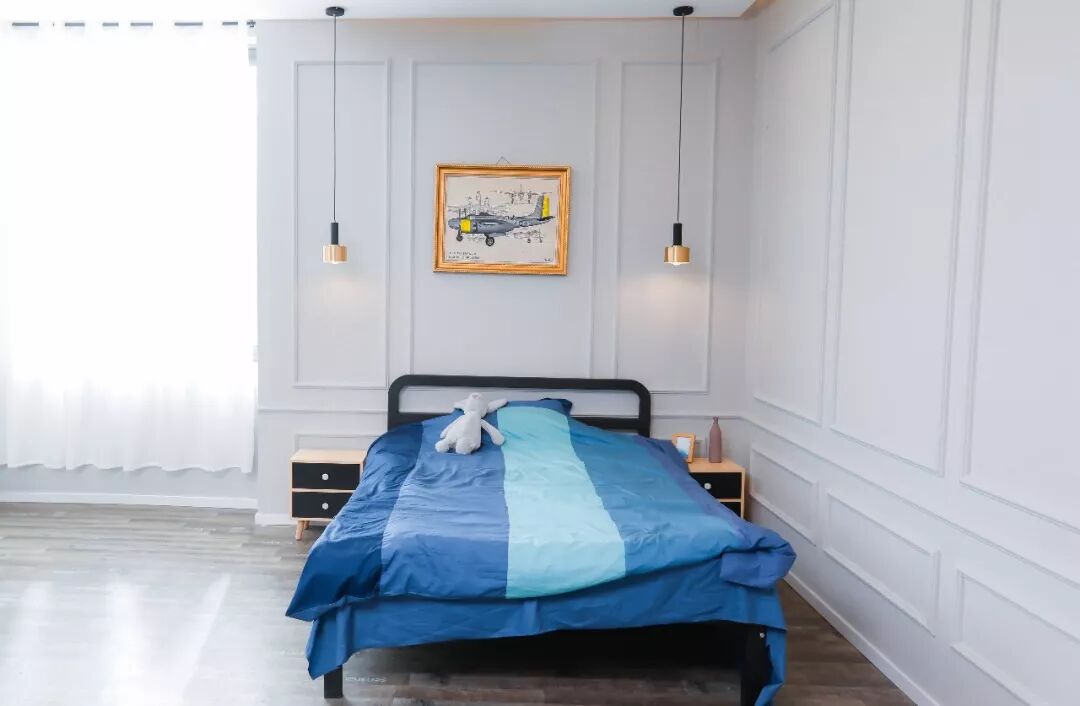 白色素净极简很是高级,加一床蓝,多了俏皮也添加了一点活力。