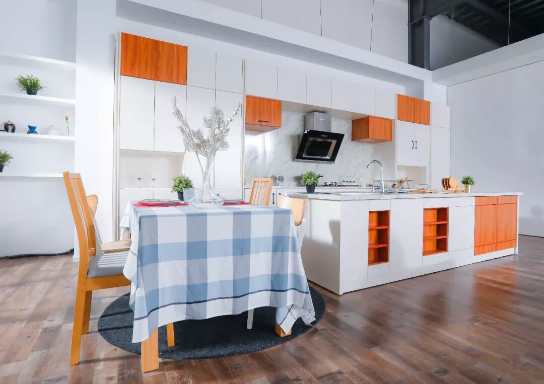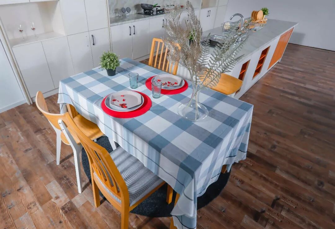 时尚复古,色调热烈又不失和谐,一抹篮格桌布让整个空间感觉不一样
