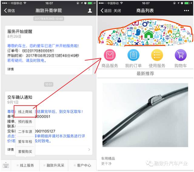 现在通过链接微信公众号,配件商可以管理客户的微信公众号,将自己的商品安置到客户的微信号中,客户有收益配件商也就有了订单。