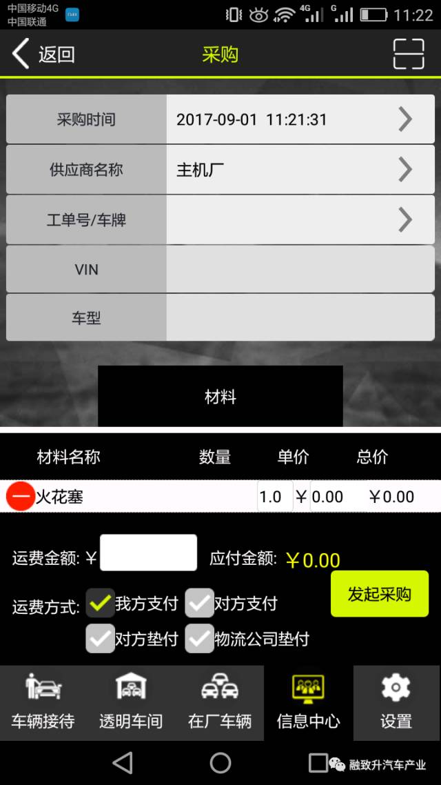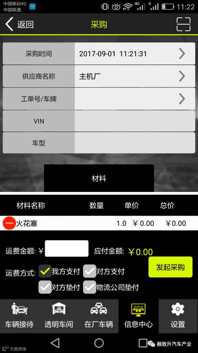 根据客户维修车辆材料的情况,发起采购,还可根据协商的情况选定运费方式