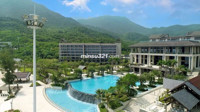 位于深圳东部大鹏半岛东岸,坐享1公里醉美桔钓沙天然海岸。246间现代雅致的东南亚风情客房和海景别墅,豪华、舒适、宽敞。全部拥有宽大阳台,欣赏视角极佳的山海美景。海上运动:莱水疗中心,超过3000平方米艾莱健身中心,户外无边际泳池、室内恒温泳池、海上运动中心。深圳醉美拍摄胜地。