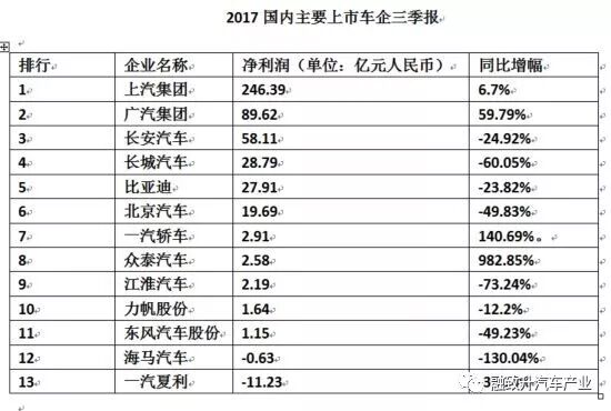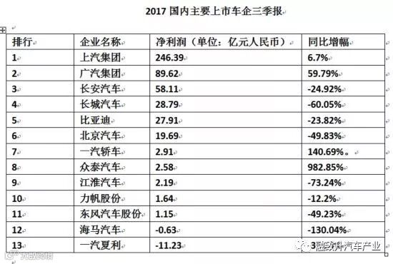 在已披露财报的企业当中,仅有上汽集团与广汽集团延续了此前的盈利水准,实现一定的同比增幅;长安汽车、长城汽车等几位传统“优等生”则在前三季度呈现出净利润同比下滑的态势;凭借新能源车型闯市场的比亚迪和江淮汽车,前三季度的净利润下滑幅度再度加大,过分依赖补贴的劣势开始逐步凸显;而一汽轿车与众泰汽车则借助第三季度成功翻身,净利润同比增幅显著。
