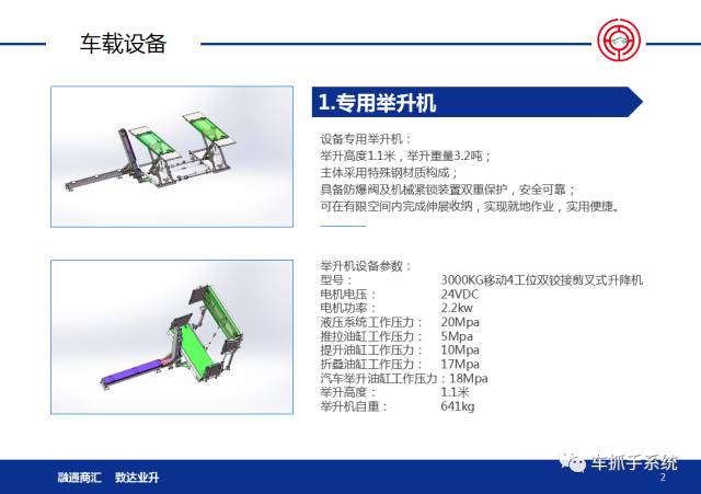 车抓手移动维保服务专用车专注于社区汽车服务,其中“4S+服务”为核心业务。多年来,组建了一个集设备研发、互联网技术、汽车服务为一体的专业团队,研发了包括汽车服务工程车、集装箱式百变环保洗车房、智能交互终端、机动停车位在内的一系列专利设备,通过+互联网的模式,搭建了一个管家式汽车综合服务平台。本公司已拥有4项PCT国际专利,8项发明专利,12项实用新型专利。