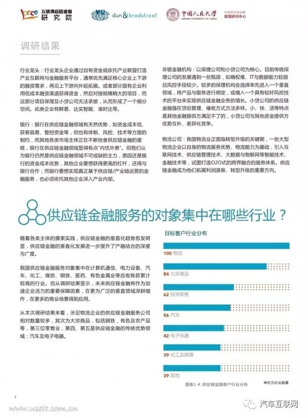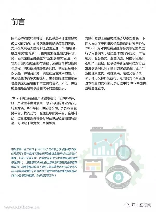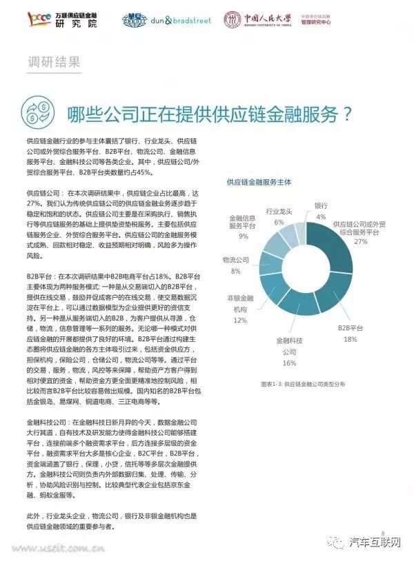 今天,汽车互联网为大家带来万联供应链金融研究院和华夏邓白氏、中国人民大学中国供应链战略管理研究中心共同调研发布的《2017中国供应链金融调研报告》,让大家系统了解当前中国供应链金融的生态图景。