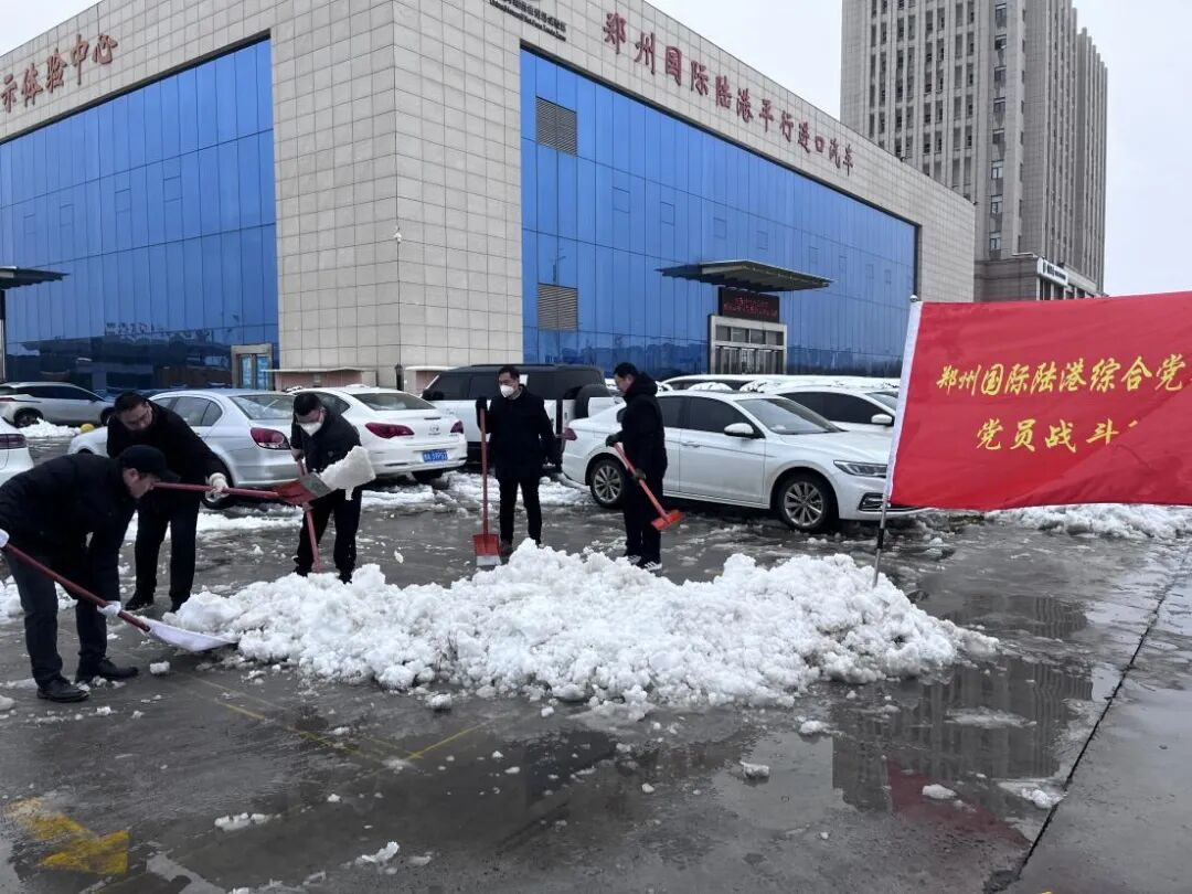 12月10日夜间,郑州市遭遇强降雪,导致陆港园区道路通行受阻,给货物进出及员工通行带来不便。为保证道路畅通,确保出行安全,郑州国际陆港开发建设有限公司第一时间采取恶劣天气应急措施,党委书记陈晗带队组织相关部门负责人,到现场一线摸排园区积雪情况,安排清理方案,组织全体党员干部、团员青年职工积极清扫积雪,为人员及车辆安全出行保驾护航。