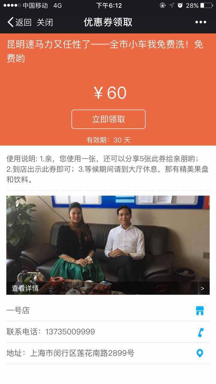 〼一张非常立体的,非常有温度的,内容丰富的,信任度高的,可转发分享的营销活动展示,客户可以分享门店规定的券数给到亲朋好友