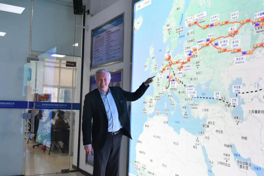 在中欧班列综合服务中心,杨文俊详细介绍了十年来中欧班列(中豫号)班列开行情况,境外集疏网络及信息化平台建设运行情况。截止目前,中欧班列(中豫号)累计开行超9000班,服务境内外客户超6000家。境外网络布局日益优化,以德国汉堡、慕尼黑,比利时列日,俄罗斯莫斯科等境外直达站点为一级枢纽,以巴黎、布拉格、华沙以及沿途换装车站点的马拉舍维奇、布列斯特等为二级集疏中心,构建了辐射欧洲、中亚、东盟和亚太(日韩等)“21个境外直达站点、8个出入境口岸”国际物流网络,业务范围辐射40多个国家140多个城市,成为河南省对外开放的一张靓丽名片。