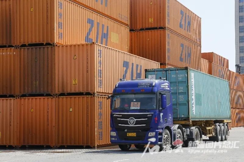 8月14日,郑州国际陆港开发建设有限公司的多式联运场站里,一辆满载货物的汽车正驶出货场。刘东莱摄