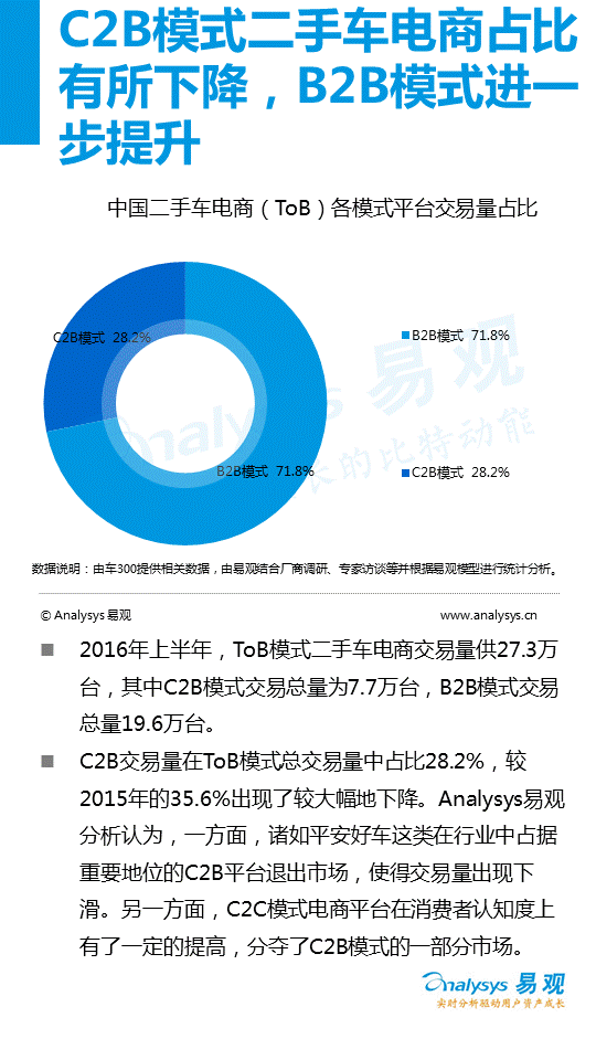 【报告】中国二手车(ToB)电子商务市场盘点2016