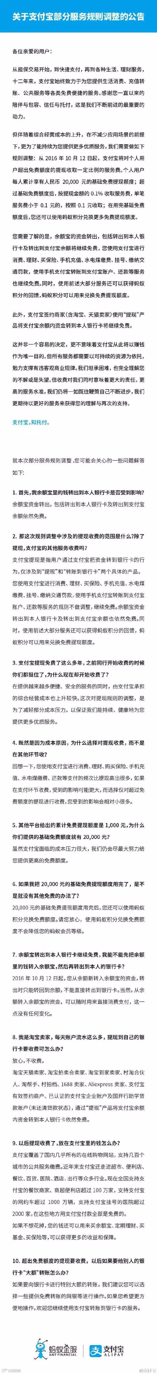 就在刚刚,号称永远免费的支付宝也正式宣布提现收费了!
