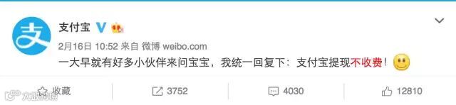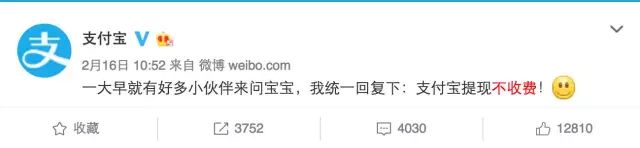 还记得微信公布提现收费后,支付宝发的那条微博么?