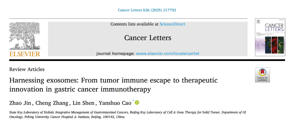 [2] Jin Z, Zhang C, Shen L, et al. Harnessing exosomes: From tumor immune escape to therapeutic innovation in gastric cancer immunotherapy. Cancer Lett. 2025;626:217792.