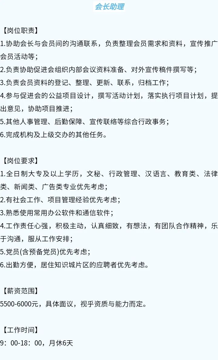 招聘岗位:会长助理