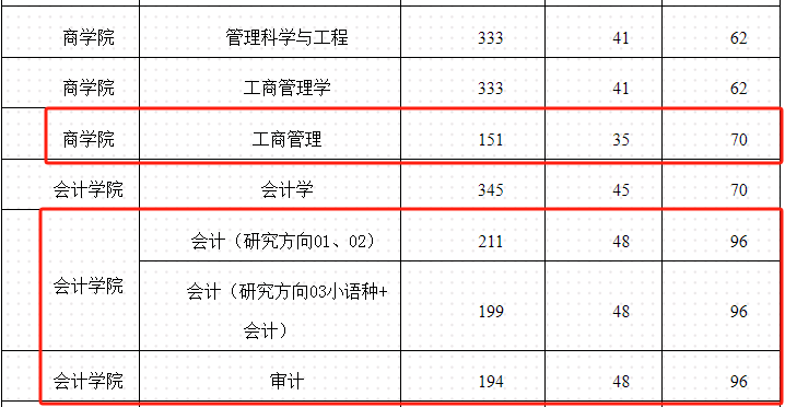 会计专硕:194/96/48