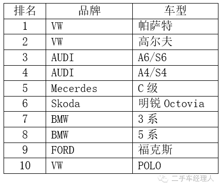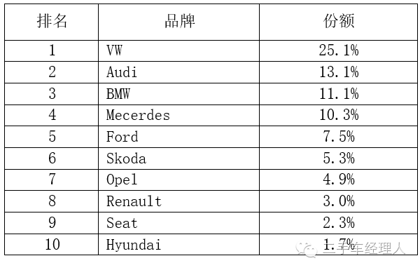 据DATAFORCE数据,德国车队市场上,最重要的10个车型为: