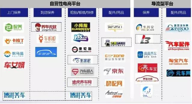 而从通道上来看,从供应链上来说,有B2B模式(供应商对中间平台),有B2C模式(中间平台对终端客户),有F2C模式(工厂直接对终端客户)等等,我觉得将来还会有C2C(网红模式)。从服务模式来看,有上门服务模式(如上门洗车、养护),有网上消费模式(类似淘宝),有O2O模式(网上订货,线下安装,这也是当下最被大众所认可的模式,顺应了互联网+的趋势),有只做线下门店服务模式。在管理模式上,有直营模式,有加盟模式,有直营+加盟形式等等。在异业联盟上,有从保险公司合作切入,有从高频的洗车业务切入,有从与加油站合作切入,有从保养机油切入,有从轮胎业务切入----