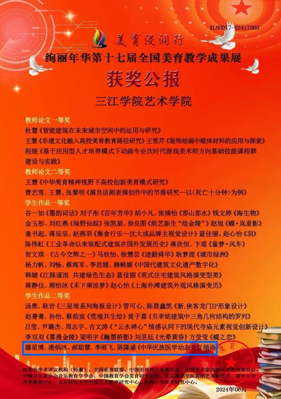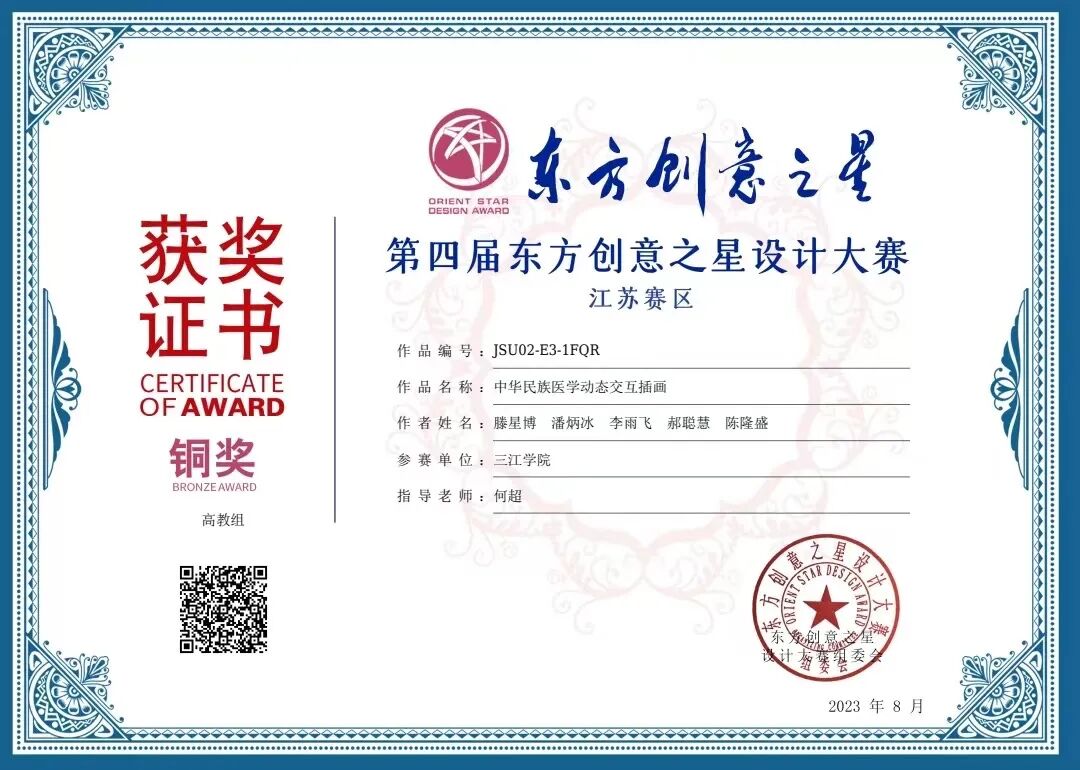 滕星博,男,中共党员,艺术学院2021级动画专业学生。现任12021132A班班长。曾获校三次校“一等奖学金”,两次校“三好学生”及“优秀共青团员”“优秀班级干部”等称号。曾获第四届“东方创意之星”江苏赛区省赛铜奖,第三届亚洲融合设计展G类(IP设计)最佳技术奖,第三届“智慧杯“高校文学和创新成果征集艺术活动视觉传达类插画一等奖,绚丽年华第十七届全国美育教学成果展学生作品二等奖,大学生人文素养一等奖等荣誉。