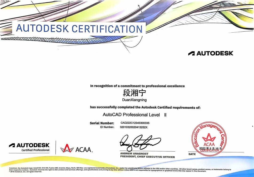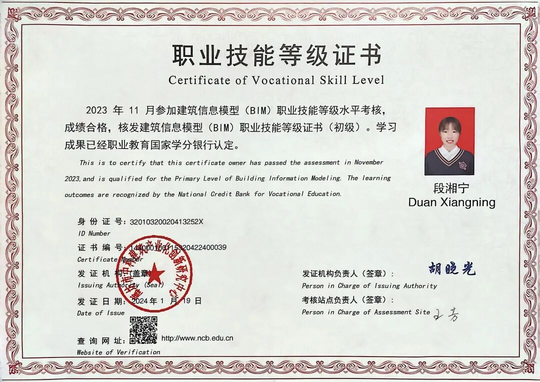 从大一入学开始,段湘宁就怀着一颗积极向上的心,她以国家奖学金为奋斗目标,以高标准要求自己,努力做到全面发展,她一路奋进,不断地提升自己。她认真对待每一门课程,尽心尽力完成每一项作业,一直保持着优异的绩点。同时,她积极准备着考取专业证书。考取专业证书时,面对自身课业的繁多,她制定了详细的每日学习计划,在保证完成每天学习任务的同时,充分利用碎片化时间,进行备考。大一学年,她就以高分通过英语四六级考试、全国计算机等级考试一级计算机基础及MS office应用考试,获得GYB创业培训合格等证书。大二学年,获得CAD中级职业技能证书。大三学年,获得BIM初级职业技能证书。