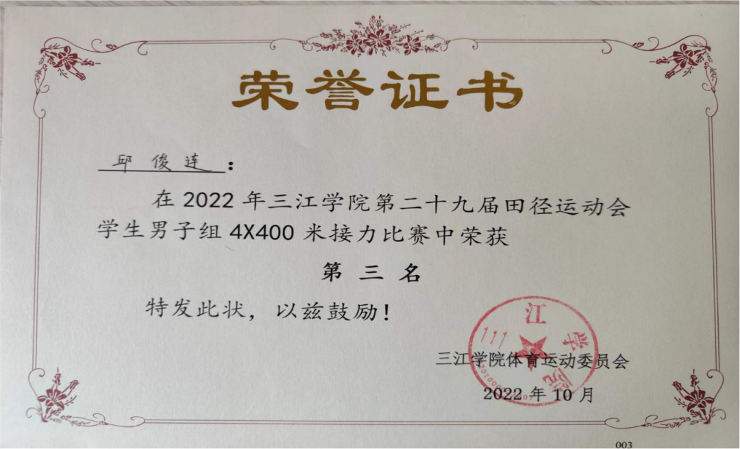 邱俊连是学校定向越野校队的成员,还多次获得“中国马拉松二级选手”荣誉称号。他说体育锻炼是贯穿了自己大学四年很重要的一件事。体育锻炼不仅给了他健康的身体,也塑造了他坚韧的性格。跑步是他备战考研期间的解压方式,他说去操场上跑两圈就觉得心里轻松多了。