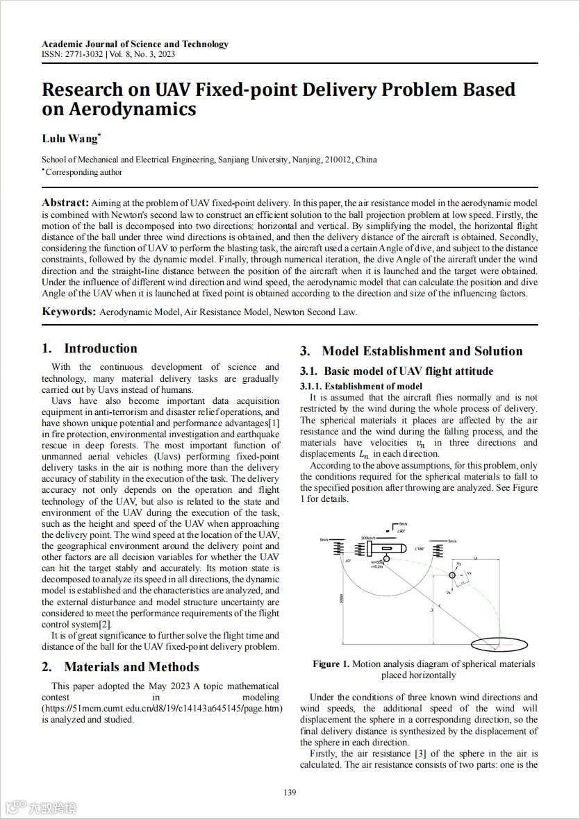 在热爱领域里,王露露积极探索、不断前进,将学科竞赛中的知识经验和成果进行转化,独自写出了自己第一篇学术论文《Research on UAV fixed-point delivery problem based on aerodynamics》,以及一篇关于图像识别的EI综述论文《Application of YOLOv8 in urban road crack recognition robot》,彰显了他在学术领域的独立性和创新能力。