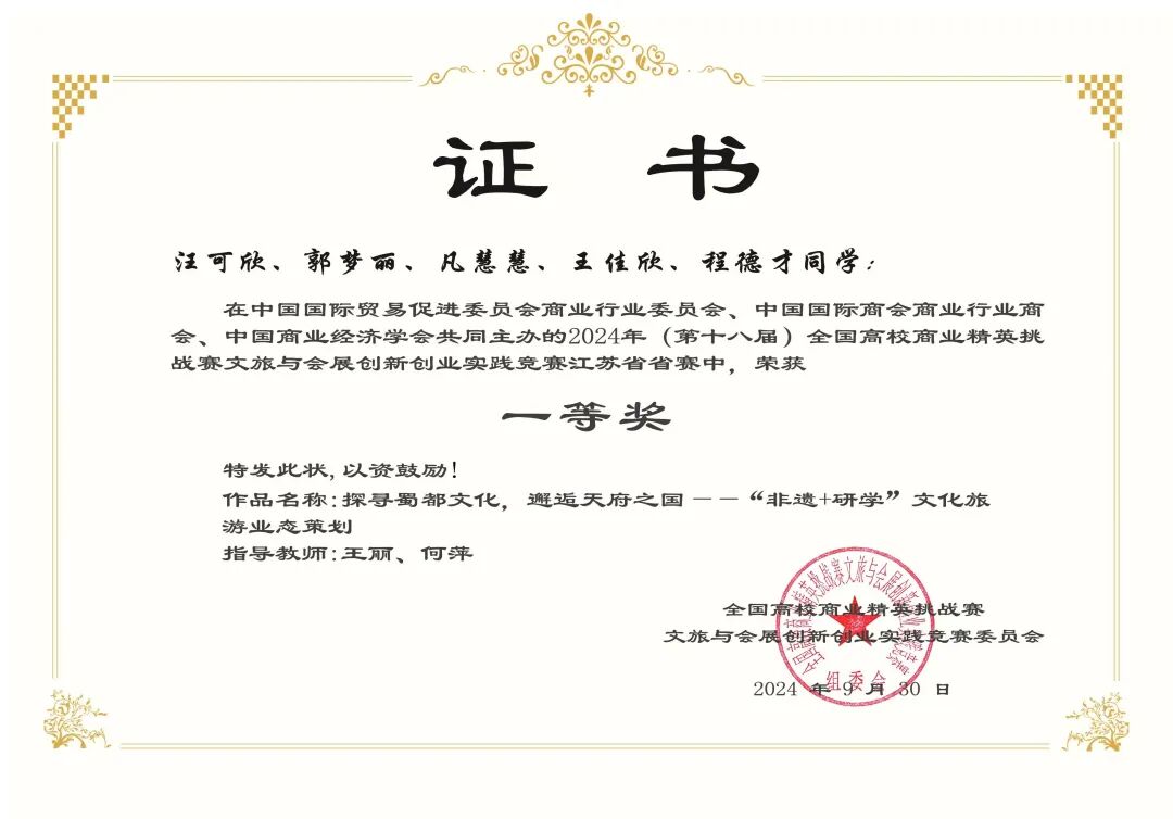“以赛促学强技能,以学促用砺精兵。”作为旅管学子,她积极投身专业建设和技能实操。在科创方面,主持国家级一般(省级重点)领域创新课题和校级重点领域创新课题2项。获国家级省部级奖项近20项。积极参加大学生I级竞赛榜单A+类比赛——挑战杯,带领团队获第十八届挑战杯红色专项省赛一等奖,打破三江学院在该赛事中的获奖纪录。