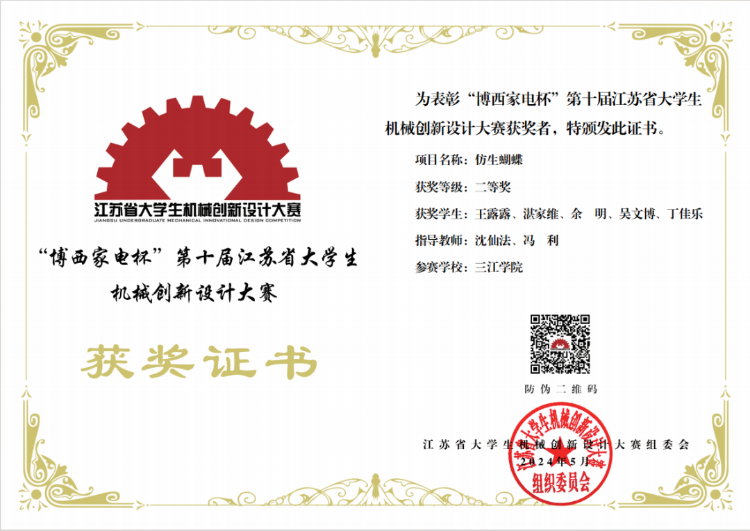 王露露向小江说道:“身为学子,学海无涯征途漫漫,每一次探索都能带给人惊喜和考验。”在参与竞赛之余,他通过图书馆阅读和知网上搜集文献,积极了解最前沿科技的发展状况,不断将课外所闻与专业所学汇总于实践,完成了他的第一项专利作品《一种机械挤压箱卷曲机》,并将自己的竞赛作品仿生蝴蝶申请专利。这不仅是对他专业能力的认可,更是为其未来的发展道路书写了更多可能性。