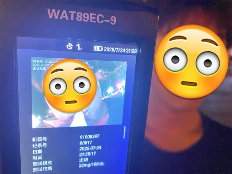 7月24日21时20分,漯河交警四大队执勤民警在漓江路与燕山路口开展夜查行动,对一辆两轮摩托车进行检查时,发现驾驶人张某某身上散发着酒气,经酒精检测,结果为32mg/100ml,驾驶人张某某属于酒驾。