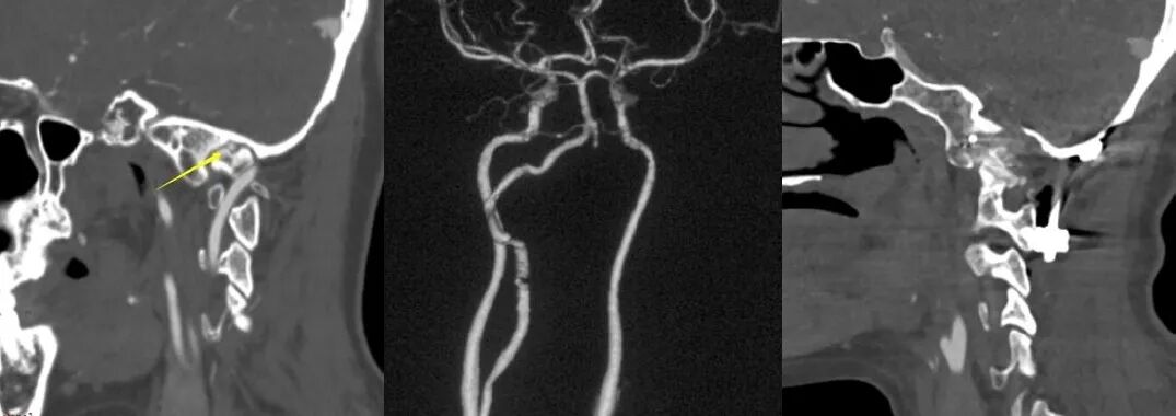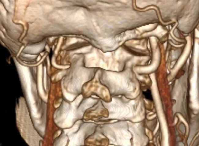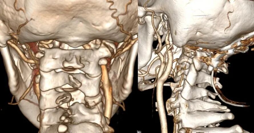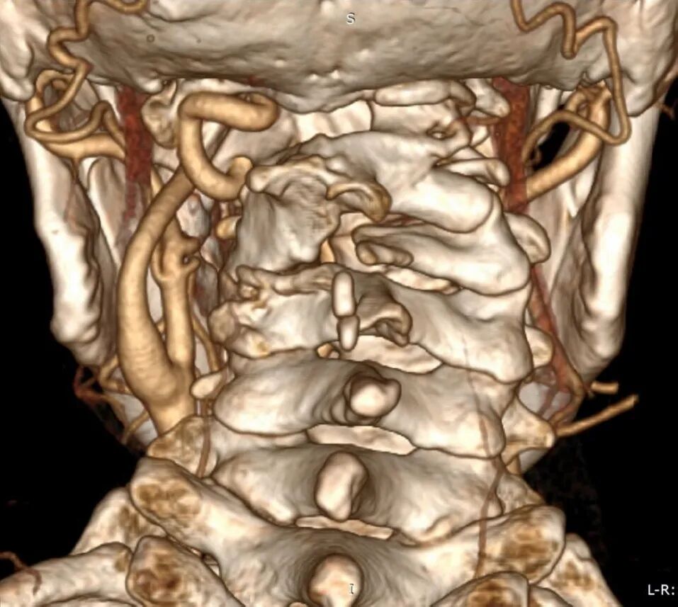 术前常规进行头颈部CTA扫描,应用计算机软件(推荐应用RadiAnt DICOM Viewer, Medixant Co.)对CTA Dicom数据进行三维重建详细观察颅颈交界区骨性结构畸形和椎动脉走行,制定手术方案,评估椎动脉损伤的风险。